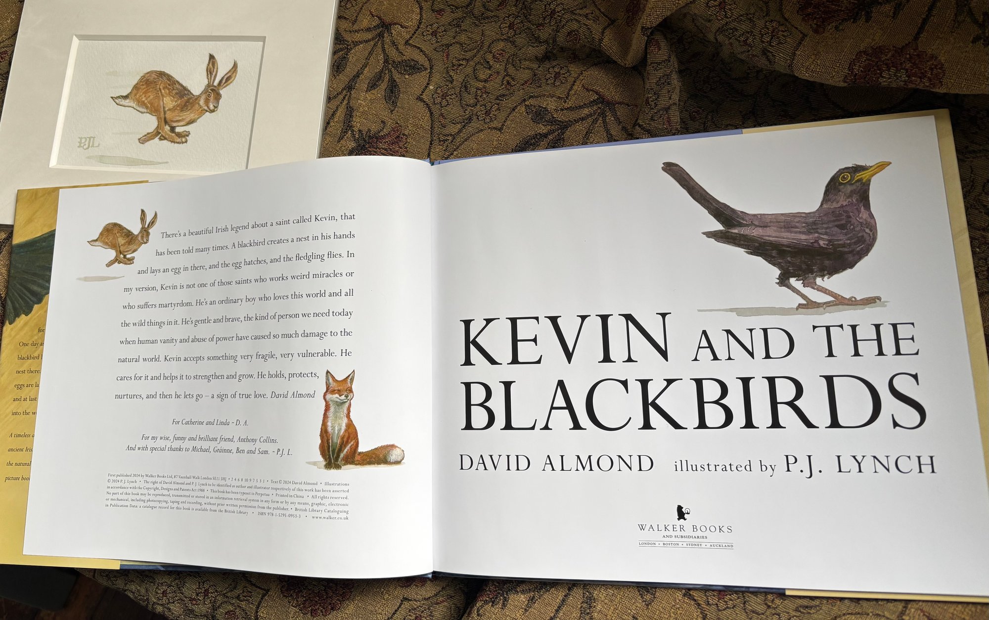 This spirited vignette illustration of a young hare comes from the title spread of 'Kevin And The Blackbirds' by David Almond and illustrated by P.J. Lynch.