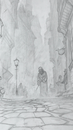 PJ Lynch’s preparatory drawing for the first illustration in his award winning edition of ‘A Christmas Carol’ by Charles Dickens.