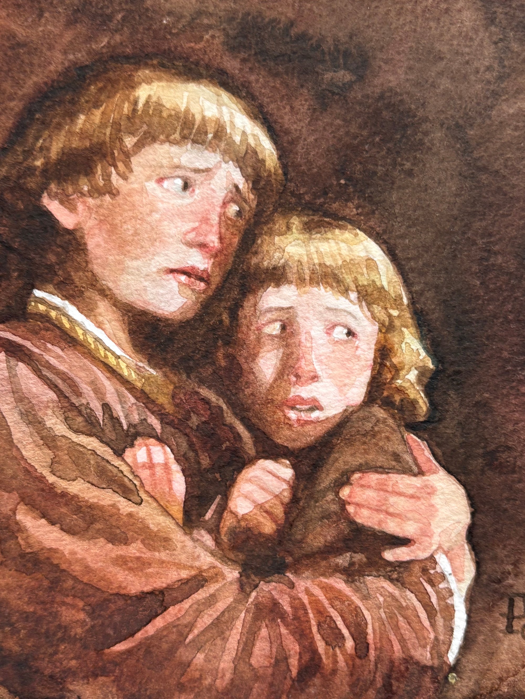 This watercolour painting by PJ Lynch shows the young princes, Edward and Richard, who are widely believed to have been murdered in the Tower of London by their uncle, Richard, Duke of Gloucester (later Richard III).