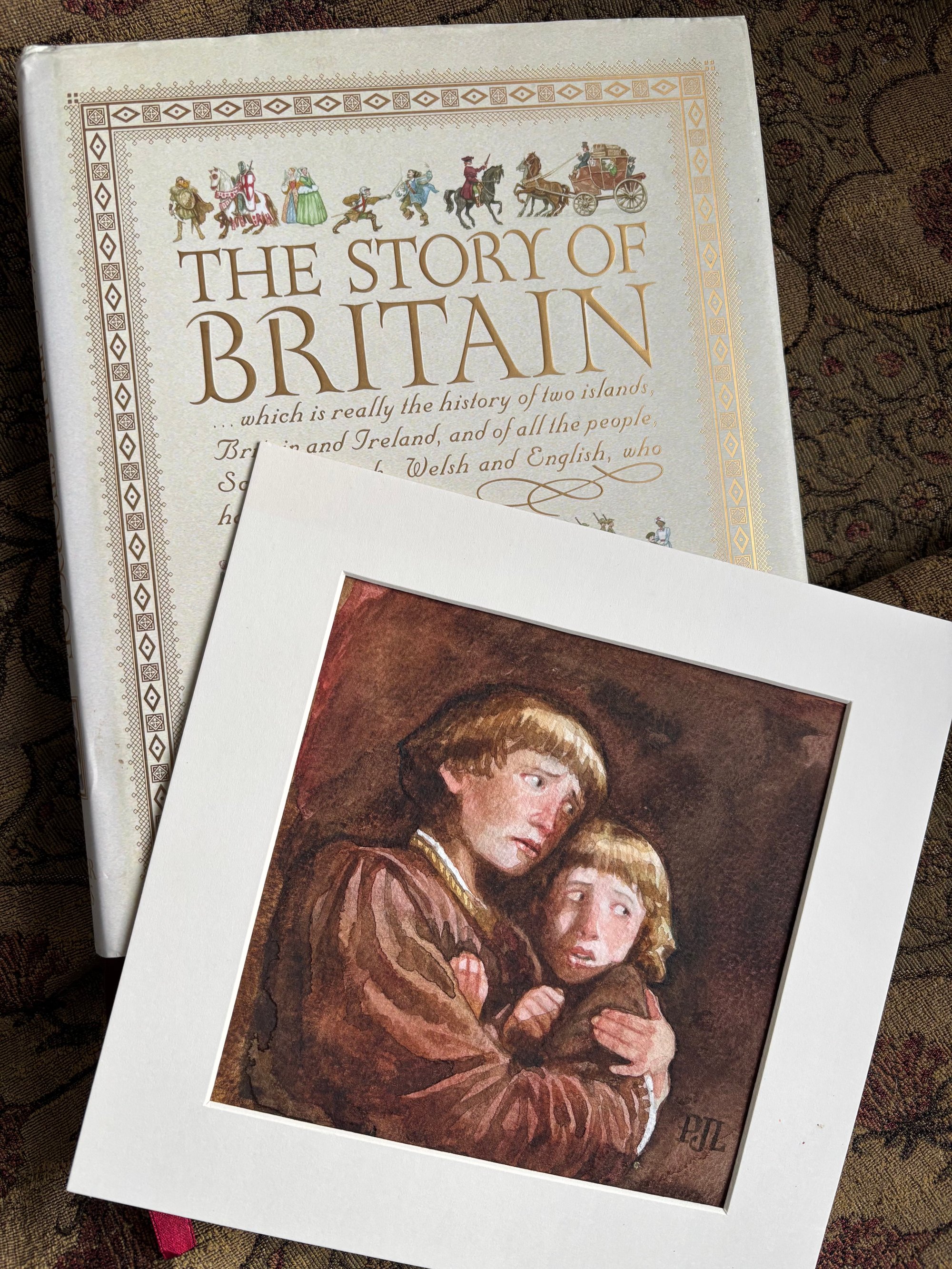 The illustration, which measures 15 cm x 15 cm, was created for "The Story of Britain" written by Patrick Dillon, a history of the British Isles for younger people.